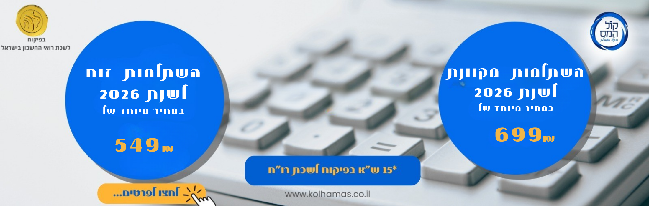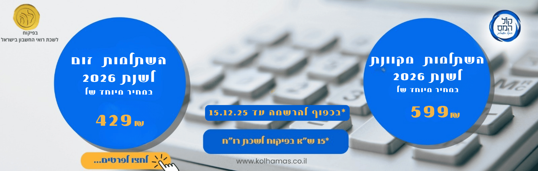 מכללת קול המס מפוקחת ומוכרת ע"י לשכת רו"ח ומועצת יועצי המס בישראל! המכללה מונה מאות סטודנטים מרוצים ועוסקת בתחומי השכר, חשבונאות וייעוץ מס מזה כעשור.הצטרפו להצלחה!